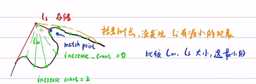以上个周期的 match point 为起点做遍历,一旦有\(l_{i+1}>l_i\),立刻退出遍历,\(l_i\)对应的点作为本周期的匹配点